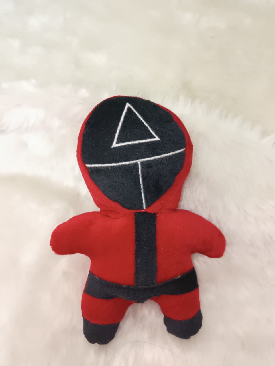 Dressed in the signature red uniform with black accents, the plush features a soft black mask embroidered with the triangle symbol, giving it that instantly recognizable look while still keeping a cute, friendly appearance. Its compact and huggable design makes it perfect for display on beds, desks, sofas, or as a collectible piece in your fan collection.